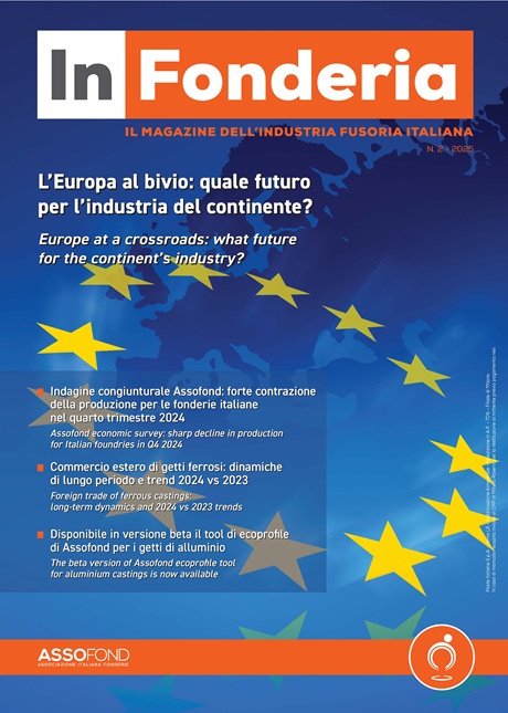 Published bi-monthly in Italian and English, every issue of our magazine In Fonderia features a cover story focusing on a specific theme, and includes interviews with the sector’s leading figures and business outlook surveys. In-depth articles on economic, environmental and technical themes also feature, as well as exclusive economic reports compiled by the Assofond Study Centre